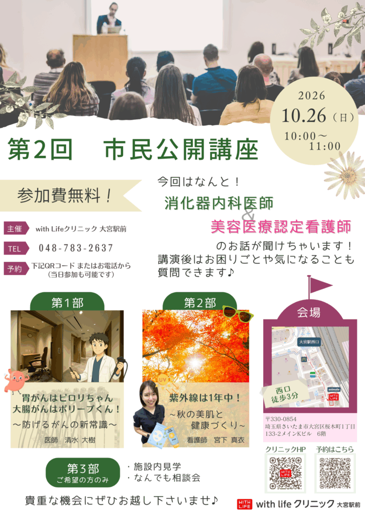 with Life クリニック 大宮駅前にて、市民公開講座の第二回を開催いたします。