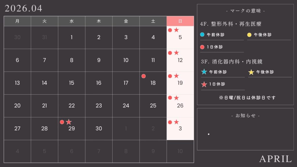 4月の診療カレンダー
