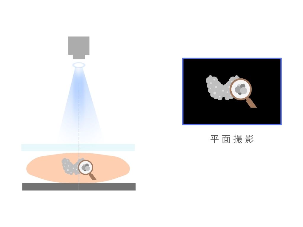 その結果、小さな腫瘤や石灰化といった病変が鮮明に写りやすくなります。圧迫をしないと影が重なって、異常が見つかりにくくなってしまうのです。