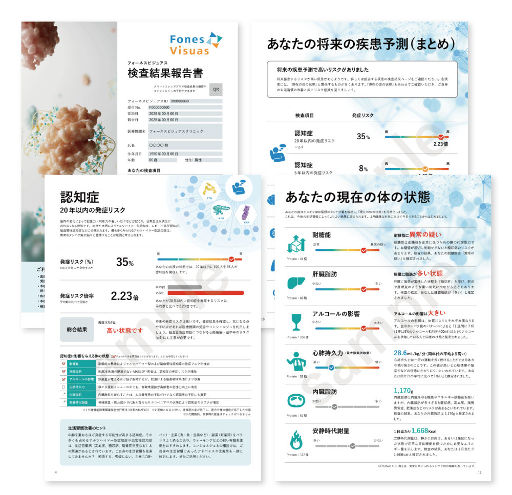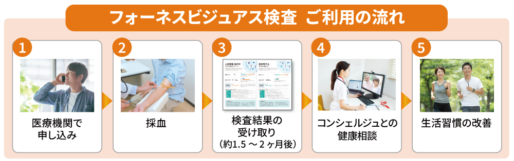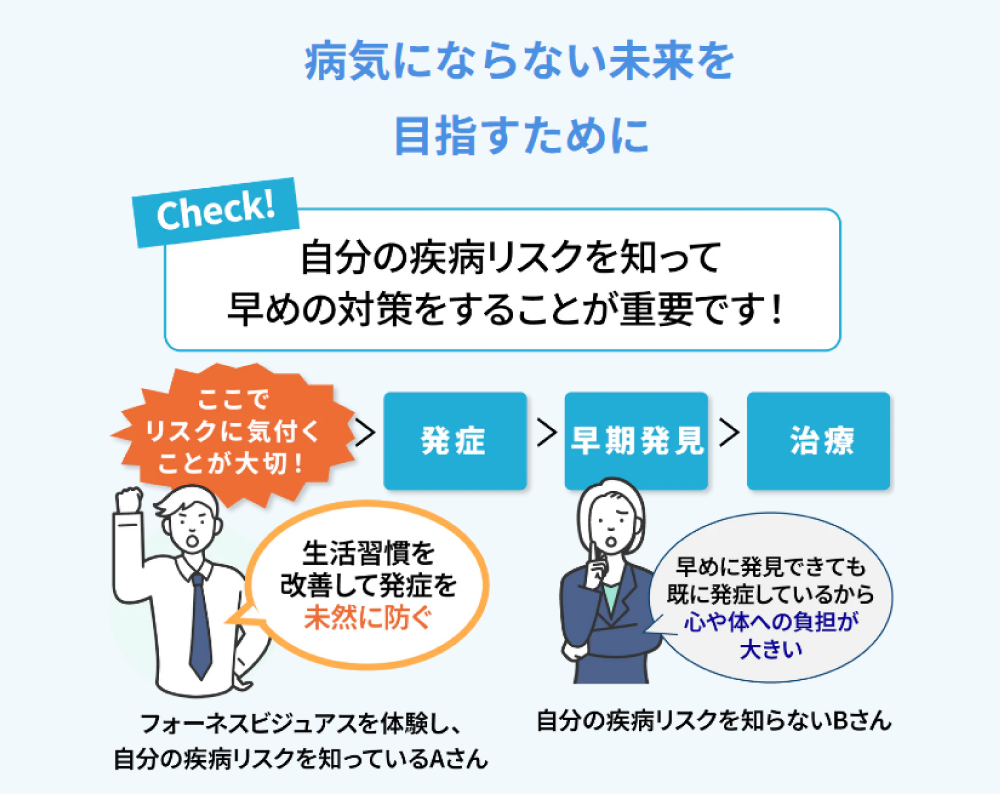 フォーネスビジュアスは、わずか5cc(約5ml)の少量の採血だけで、将来の重大な病気の発症リスクと、
