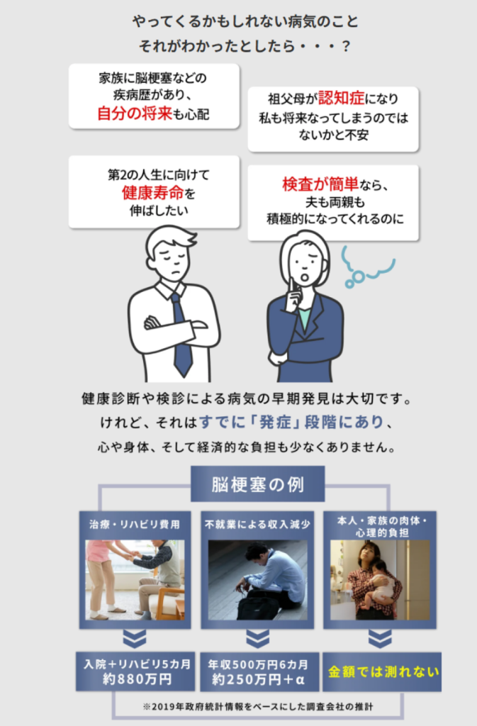 NECグループのフォーネスライフ社が提供しており、健康診断や人間ドックと同時に受診いただくことで、