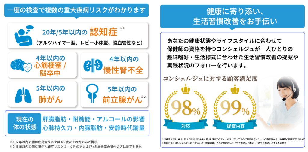 フォーネスビジュアスは、健常な方が病気になっていく過程を追跡した大規模な研究(コホート研究)のビッグデータに基づき、
